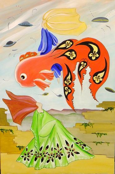 Owl wall hanging. Acrylic on linen 1m x 2m - SOLD